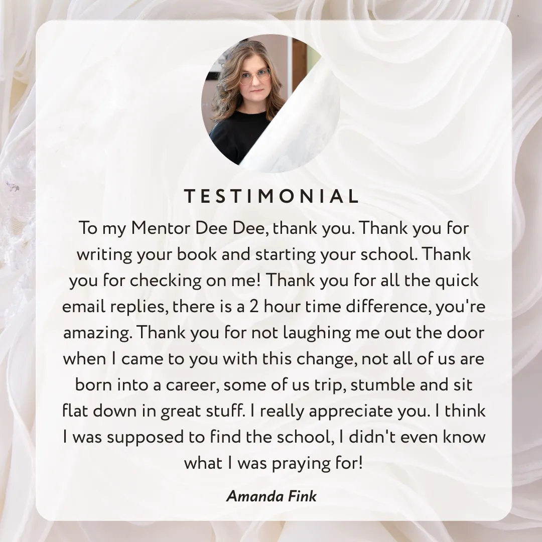 This is the skill gap that separates hobbyists from professionals. When you can rescue a $4,000 gown that would otherwise be a total loss, salons remember you forever.